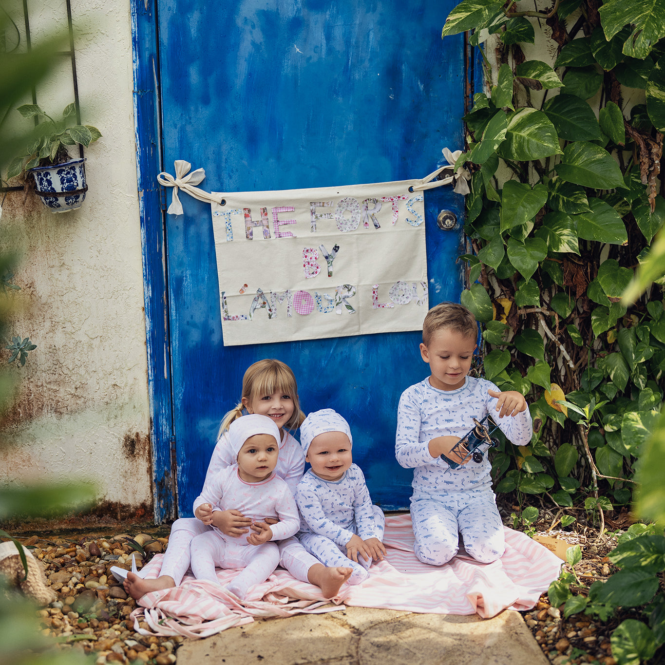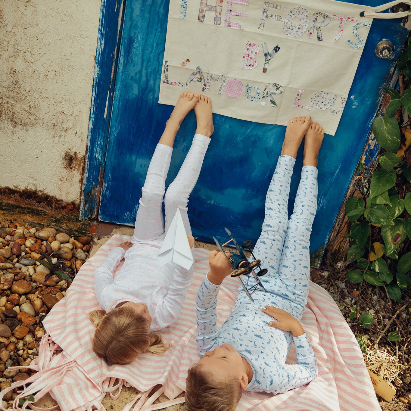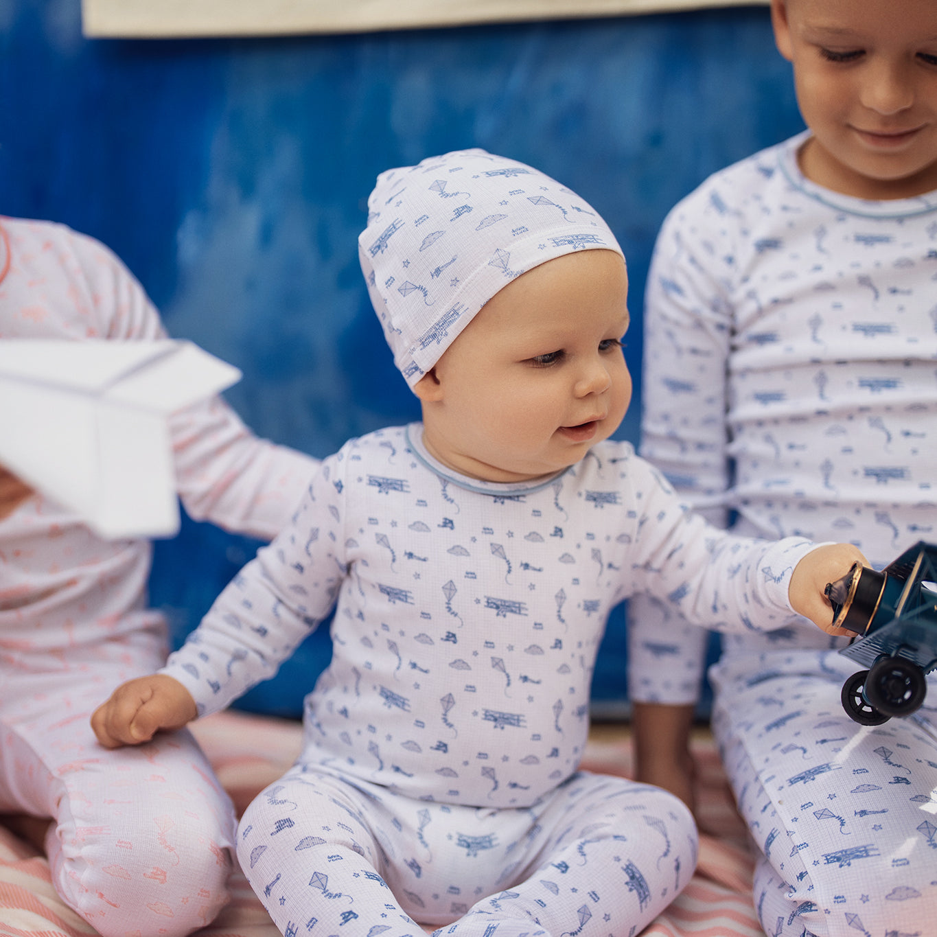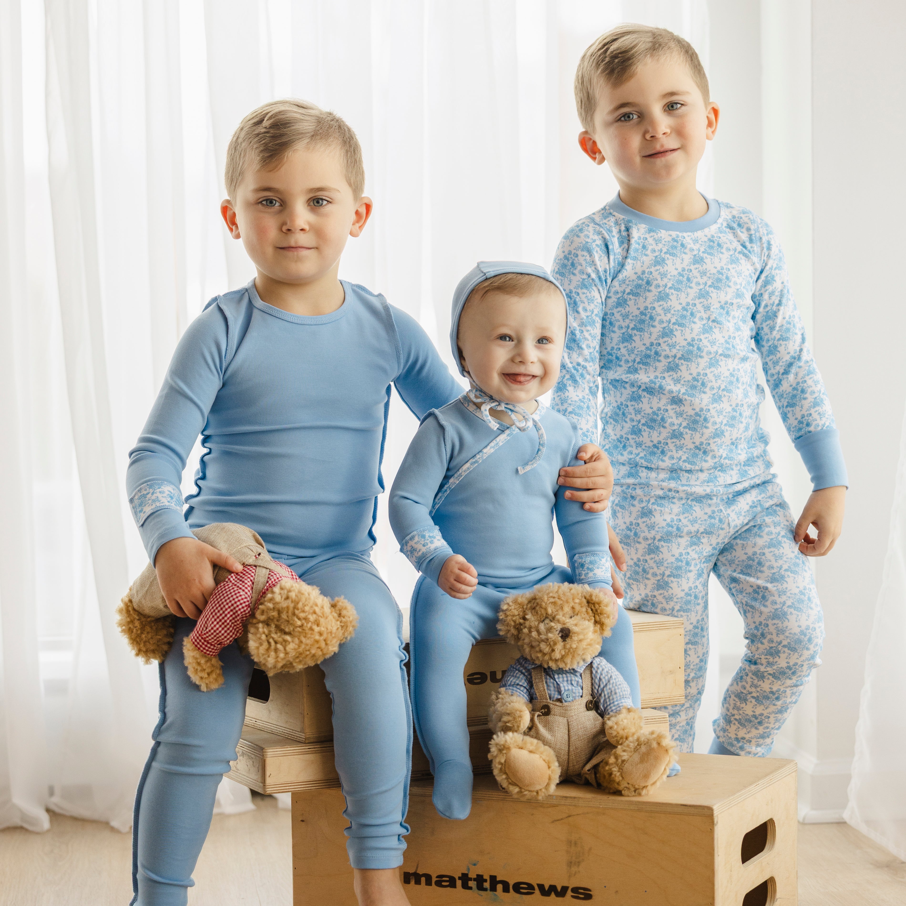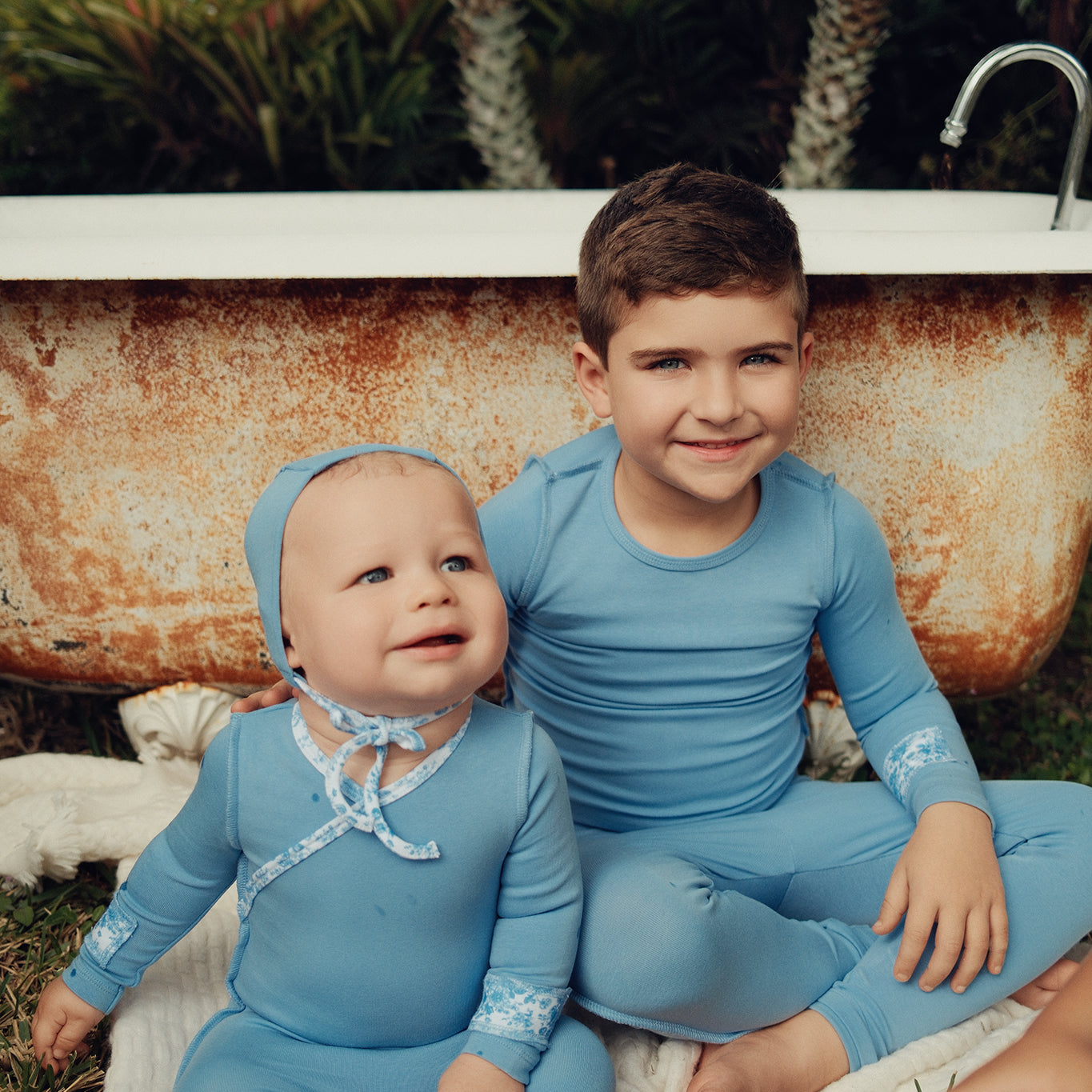 Blue Floral Striped Footie Set