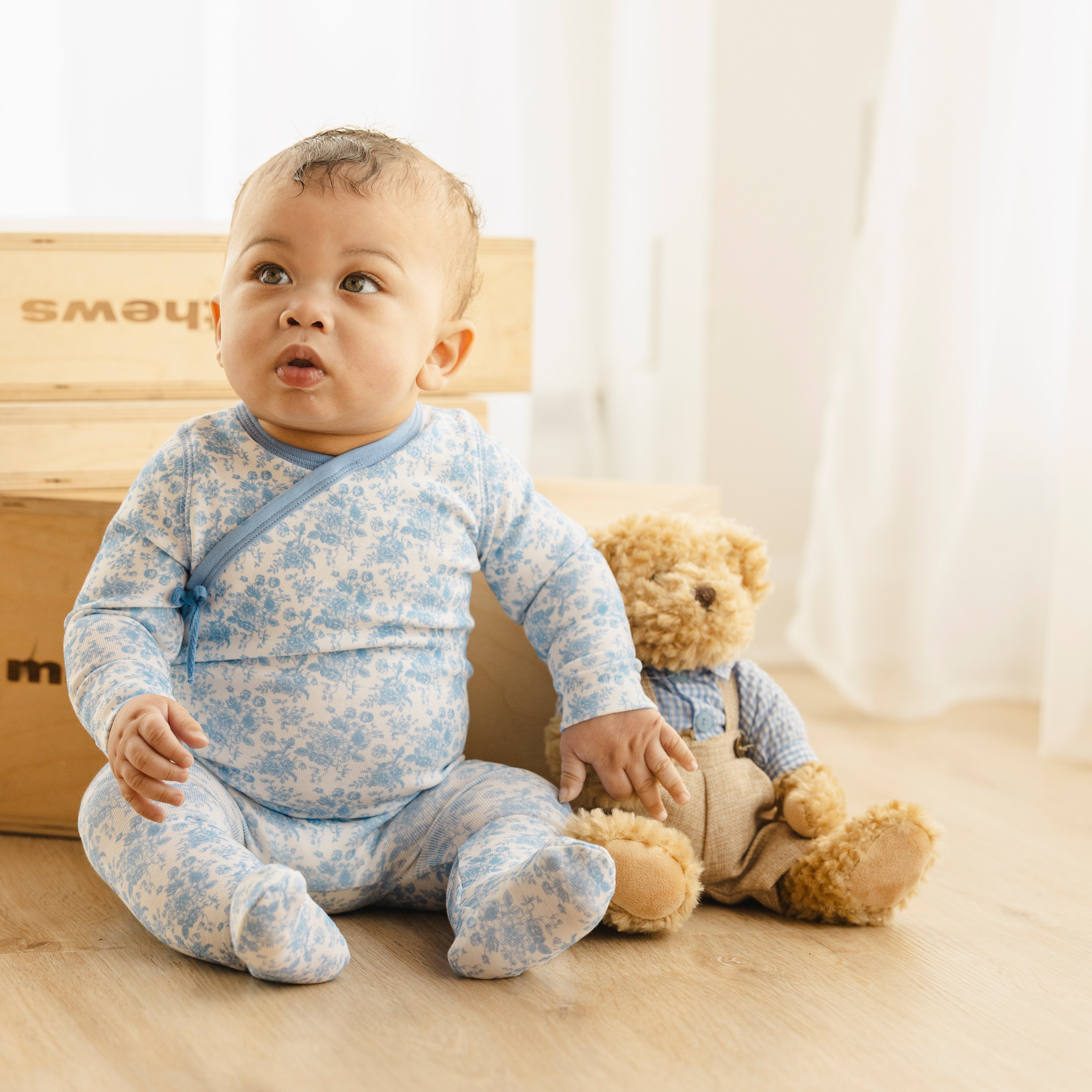 Blue Floral Striped Footie