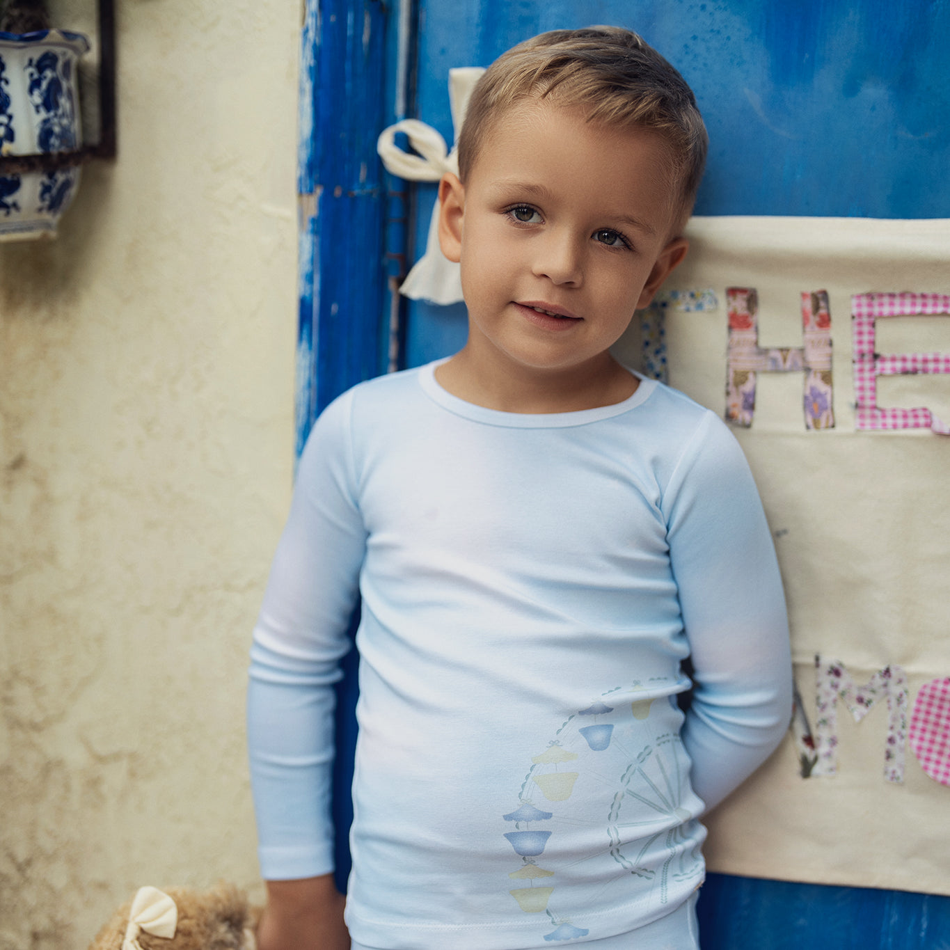 Pastel Blue Ribbed Henley Footie